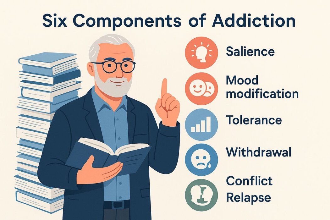 Марк Гриффитс — авторитет в области изучения зависимостей, который за свою карьеру написал более 1000 научных работ и множество монографий. Его исследования охватывают такие темы, как игровая зависимость, интернет-аддикция и шопоголизм. Именно он предложил модель, состоящую из шести компонентов зависимости, которая стала основополагающей в современной аддиктологии.