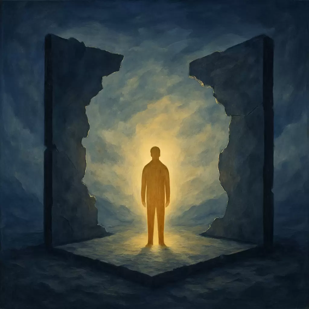 Представьте, что в центре нашего сознания горит крошечный огонёк — это «я», отделённое от всего мира. Этот огонёк кажется постоянным, и вокруг него мы строим дом из воспоминаний, надежд и страхов. Этот дом — это наш «я-конструкт», наша личность, которую мы крепко обнимаем, забывая, что он основан на зыбком песке восприятия.